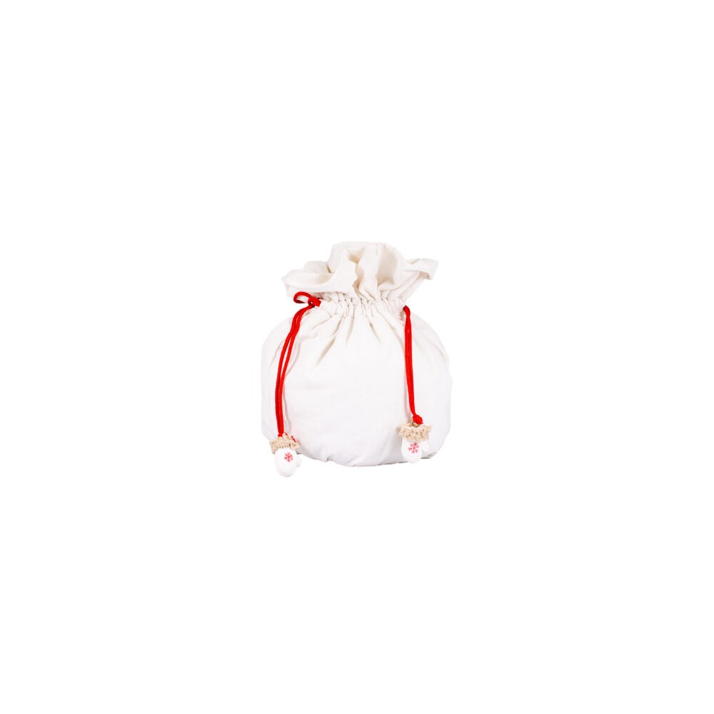 avec cordon de serrage rouge et gants en tilleul blanc avec flocon de neige rouge
