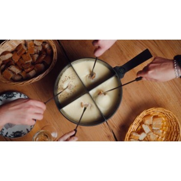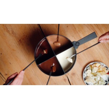 Des soirées fondue conviviales sans compromis : le 4Fondue Caquelon breveté avec revêtement antiadhésif et décor Edelweiss
