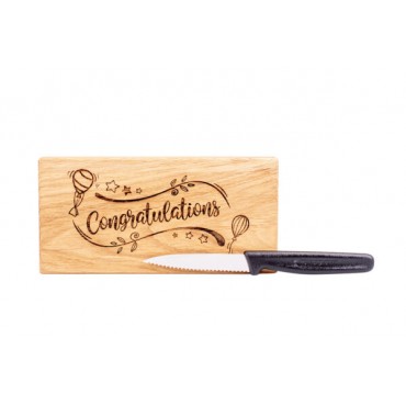 Planche à couteaux pratique en bois de chêne FSC® avec gravure laser, lame de coupe et sac en lin. Gravé en Suisse.