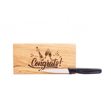 Planche à couteaux pratique en bois de chêne FSC® avec gravure laser, lame de coupe et sac en lin. Gravé en Suisse