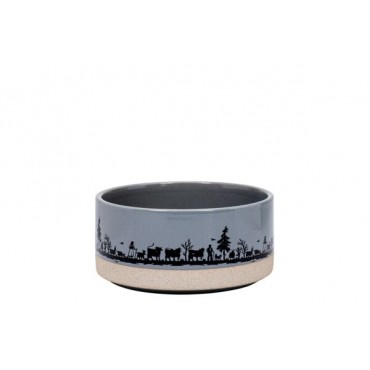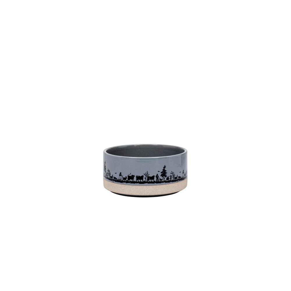 • Bleu-gris avec décor noir "Famille de la montée à l'alpage