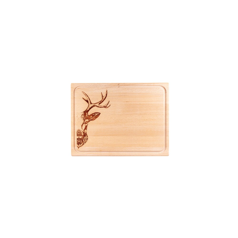 Planche à viande et planche à hacher massives FSC® avec rainure à jus et gravure au laser. Gravée en Suisse.