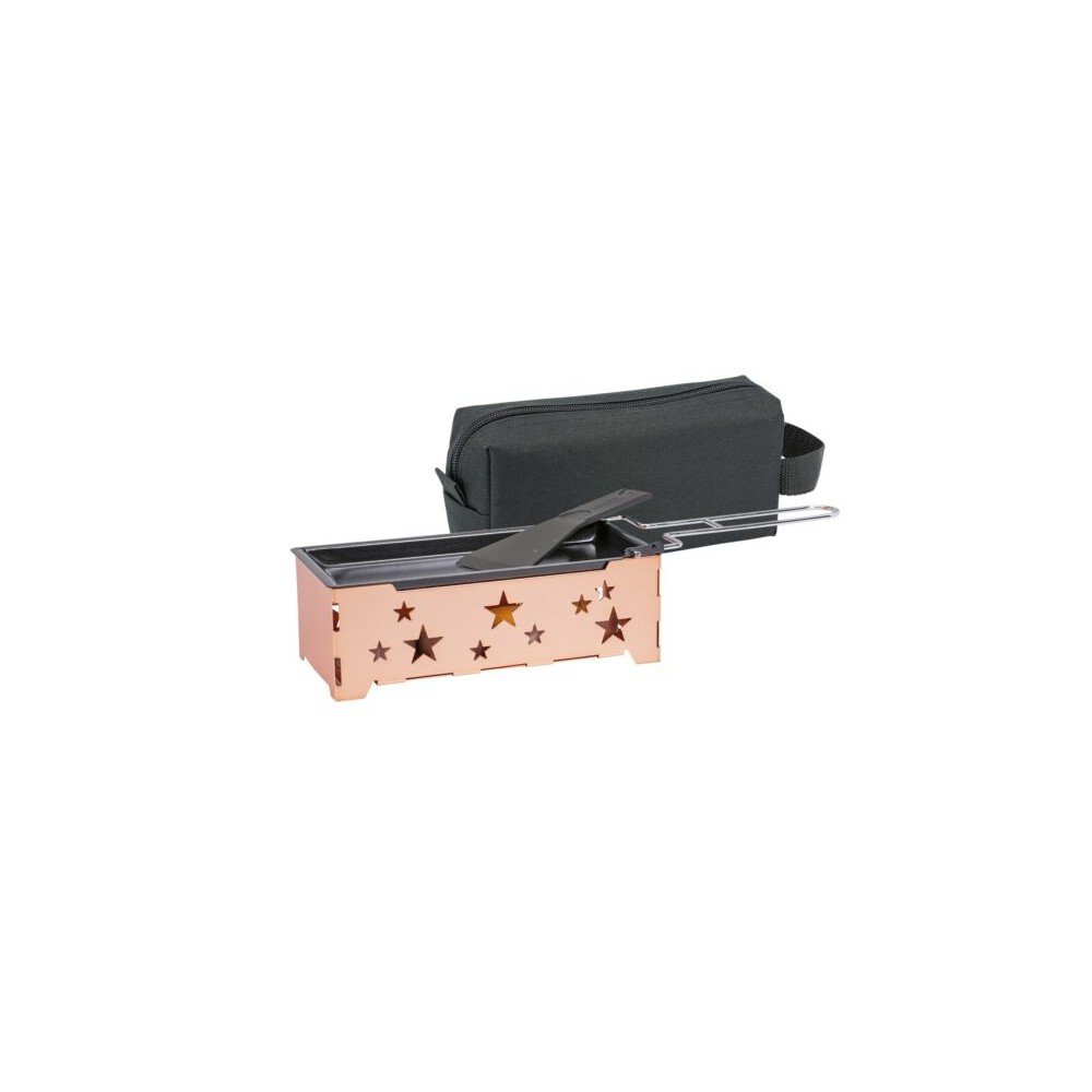 Le four à raclette sans électricité dans un sac de transport pratique avec fermeture éclair. Préparez rapidement et facilement votre raclette. Cette raclette à bougies permet également de préparer très facilement d'autres plats, comme des petits morceaux de viande, des œufs au plat, des crêpes, etc.
